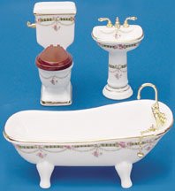 Compare Dollhouse Miniature 3 Pc Victorian Rose Bath Set by Reutter Porzellan